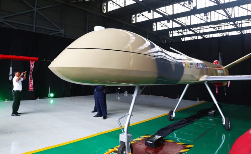 NIRAWAK: Drone Elang Hitam saat roll-out di hanggar PT DI akhir 2019 lalu. (BPPT FOR JAWA POS)