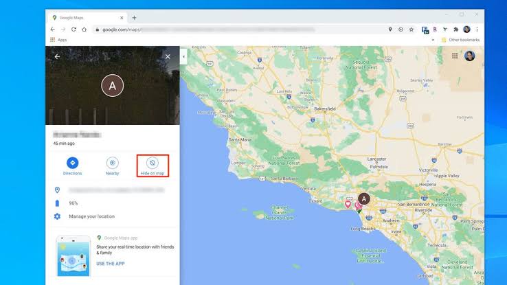 Anda juga dapat berhenti membagikan lokasi dengan seseorang melalui desktop.