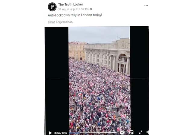 Video aksi protes yang disebar halaman Facebook The Truth Locker bukan terjadi di London, Inggris. Melainkan aksi protes di Belarus yang menentang kediktatoran pemerintahan Alexander Lukashenko.