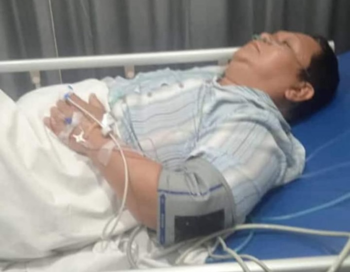 Pria berbadan gempal itu juga tengah menjalani opname, dengan beberapa infus disuntikan ke tangan kiri. Pria tersebut nampak memejamkan mata.
