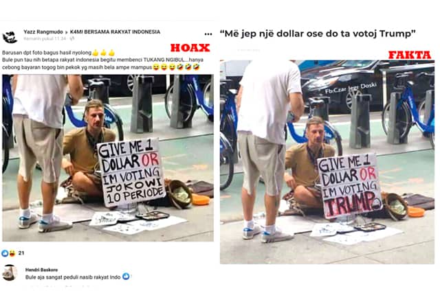 Memanfaatkan situs padanan gambar, beberapa portal berita pernah mengunggah foto pria tunawisma itu. Salah satunya, portal klankosova.tv yang mengunggah foto tersebut empat tahun lalu. Më jep një dollar ose do ta votoj Trump, begitu judul ulasan yang ditulis dalam bahasa Albania.