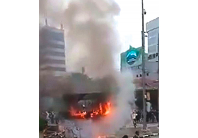 ”Siang tadi, Pos Polisi Tg Tani di bakar massa demo tolak BBM,’’ tulis akun Facebook Erwin S. Can. Situasi pos polisi yang terbakar itu tampak direkam dari dalam kendaraan. Terdengar keterangan perekam bahwa lokasi tersebut berada di Tugu Tani (cutt.ly/SoreTadi).
