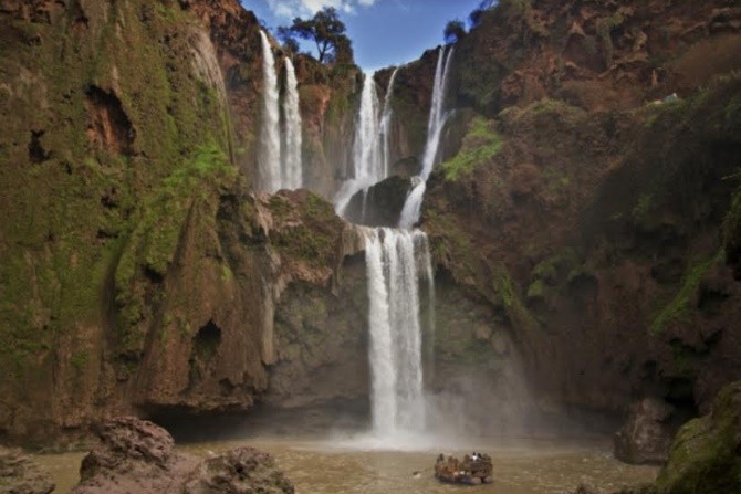 Ouzoud adalah air terjun yang tertinggi di Afrika Utara. Dapat dicapai dengan 2,5 jam berkendara dari Marrakech melalui lanskap yang beragam dan menakjubkan. Begitu tiba di lokasi yang indah ini, Anda akan dibuat berdebar oleh air yang terjun berundak mengenai batu-batu di bawahnya dengan dramatis, serta pemandangan hijau yang subur dan beberapa monyet macaca barbary.