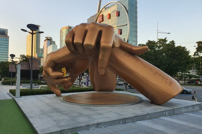 COEX Mall sendiri pada bagian depan terdapat ciri khas berupa patung dua tangan raksasa yang sedang menari tarian khas Korsel yakni Gangnam Style.