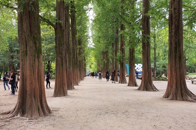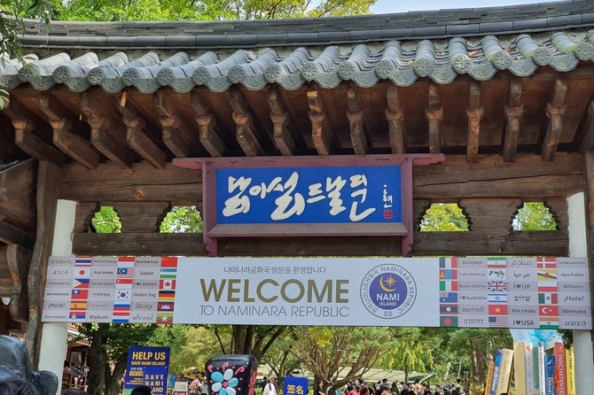 Untuk mencapai Pulau Nami, pengunjung menyeberang dengan menaiki kapal dan tak sampai 10 menit sudah sampai. Nami merupakan pulau dengan pohon-pohonnya yang khas. Pulau ini menjadi terkenal berkat film K-drama fenomenal Winter Sonata. Pulau ini terletak di area Bendungan Cheongpyeong, di wilayah Chuncheon-si, Gangwon-do. Saat musim gugur, pulau ini berubah menjadi kuning karena daun-daun dari pohon Sonata mengering dan berguguran.
