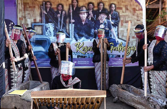 MASIH BERTAHAN: Kesenian lesung yang disajikan oleh warga Desa Kemiren, Kecamatan Glagah, Banyuwangi. (RAMADA/JAWA POS RADAR BANYUWANGI)
