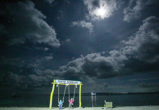 TERANG BULAN: Sinar bulan ikut menambah indahnya suasana malam di pulau-pulau wilayah perairan Sumenep. Termasuk di Pantai Sembilan. (Alfian Rizal/Jawa Pos)