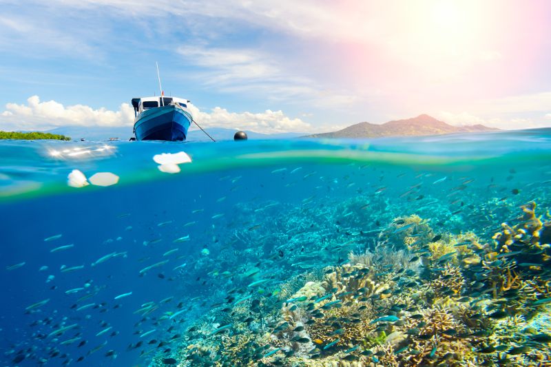 Taman Nasional Bunaken bisa dikatakan sebagai salah satu surga bagi penikmat wisata bahari karena keindahan bawah lautnya, terutama ekosistem terumbu karang yang sangat kaya. Sebagai salah satu kawasan konservasi laut sekaligus tempat wisata, Taman Nasional Bunaken memiliki luas terumbu karang sekitar 11.709 hektare dengan 390 spesies terumbu karang.