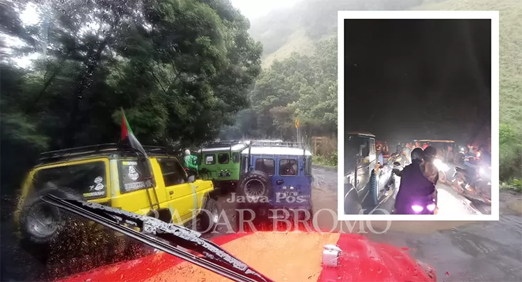 Kepadatan arus lalu lintas menuju kawasan wisata Gunung Bromo pada liburan panjang Isra Miraj dan Imlek tahun 2024. (Radar Bromo)