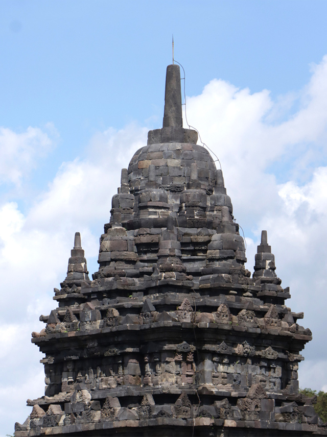 CIRI KHAS: Candi Sewu memiliki ciri khas berupa sebuah kubah di bagian atasnya. Mirip dengan bangunan lain di negara-negara yang jadi pusar persebaran Buddha. (M. Ihsan/Jawa Pos Radar Solo)