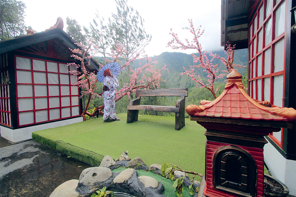 NEGERI SAKURA: Wisata Genilangit juga menawarkan wahana tematik dengan nuansa Jepang, membuat pengalaman berkunjung semakin menarik. (AJI PERDANA PUTRA/JAWA POS RADAR MAGETAN)