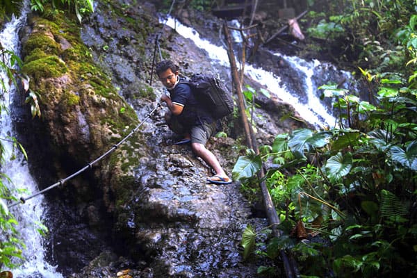 ”Saya sudah tiga kali datang ke sini. Selain pemandangannya yang luar biasa, medan yang sulit membuat saya tertantang untuk melihatnya,” kata Hary Mulyo, salah seorang wisatawan.