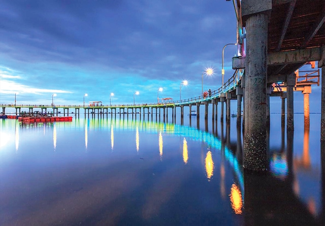 Pengunjung yang datang ke Kampung Kerapu juga bisa menikmati sajian menarik. Jalan-jalan di atas laut. Ya, pengelola destinasi tersebut menyediakan dermaga apung berbentuk melingkar. Bangunan yang menjorok ke tengah laut dengan panjang sekitar 300 meter itu berbahan kayu. Sensasi makin lengkap dengan sajian aneka hidangan ikan kerapu yang dimasak chef yang cukup profesional.