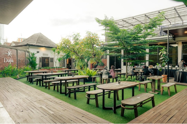 Kafe hits dan instagramable berikutnya adalah Daja House. Tempat ini memiliki konsep yang sangat unik, desain dinding-dinding kaca dan furniture bernuansa kayu hingga pepohonan hijau yang menghiasi tempat ini.
