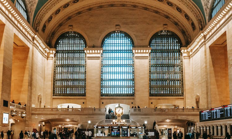 Stasiun kereta api Grand Central di Kota New York dengan interior klasik. (sumber: pexels / Photo by Charlotte May)