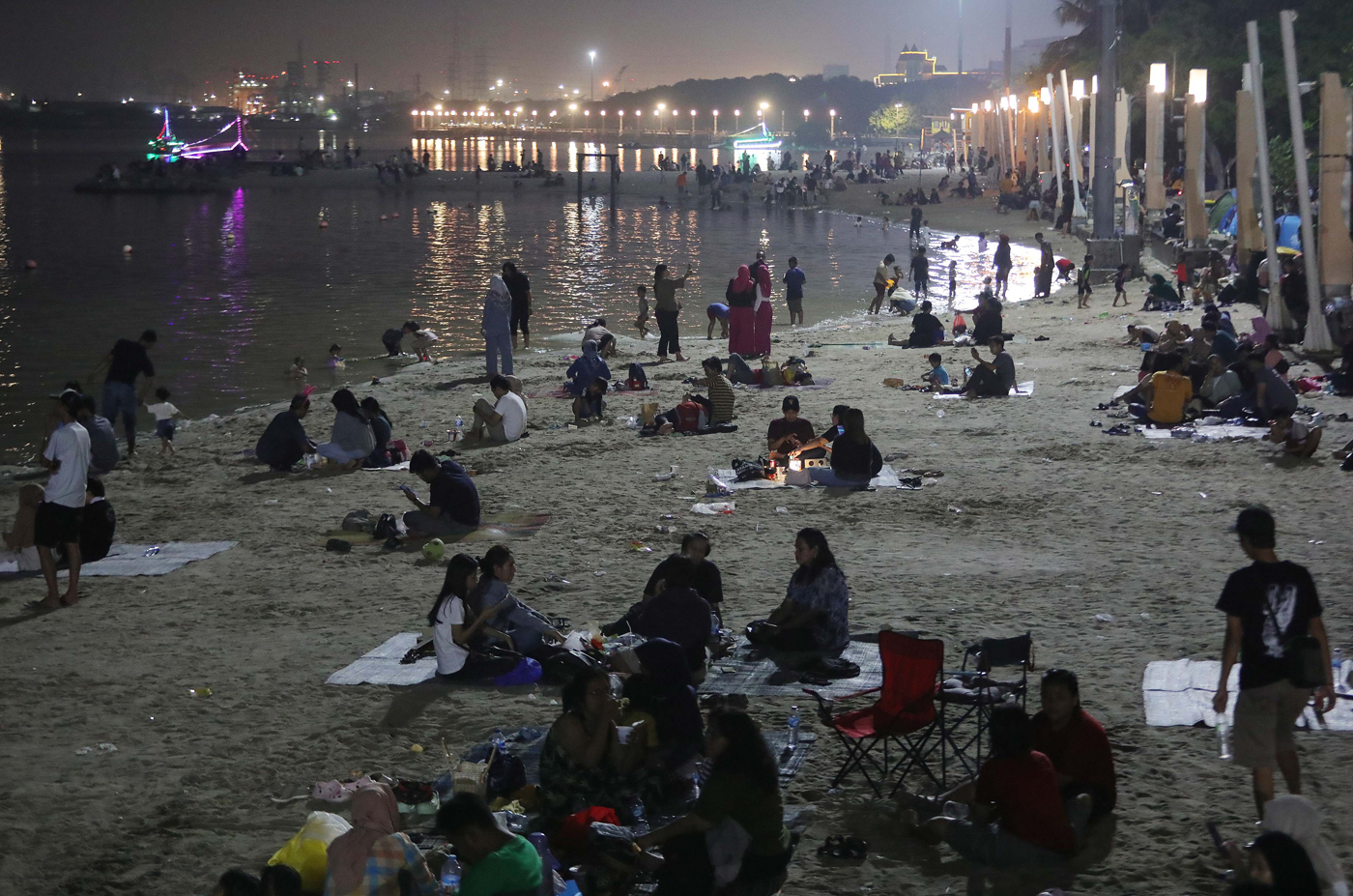 Ratusan pengunjung bermain di Pantai Ancol. Ancol salah satu wisata favorit masyarakat berlibur di saat long weekend.