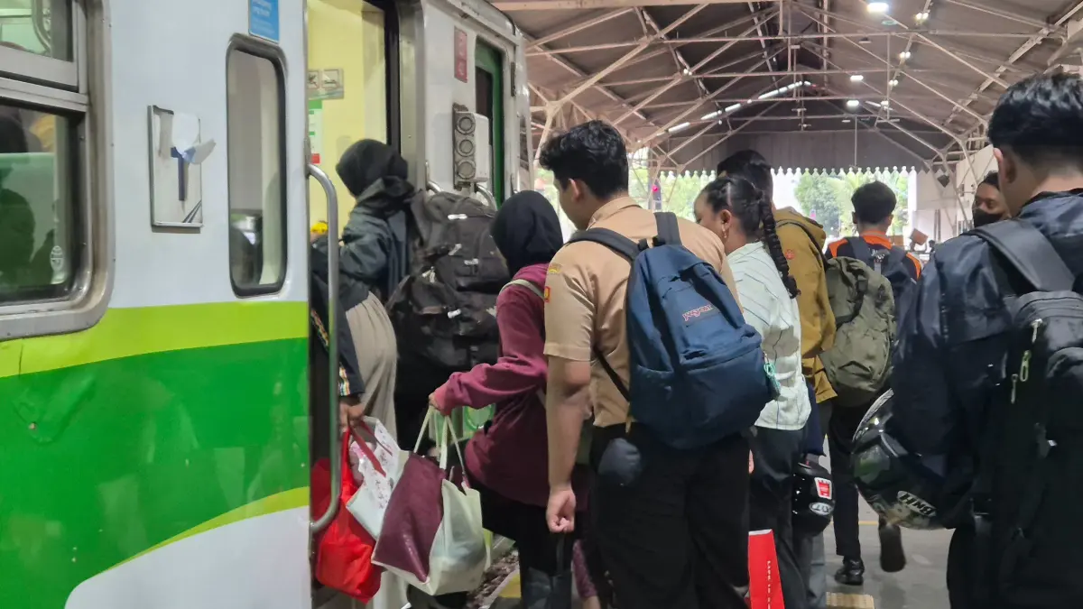 Sejumlah penumpang menaiki gerbong kereta jarak jauh di Stasiun Gambir, Jakarta. (Hanung Hambara/Jawa Pos)