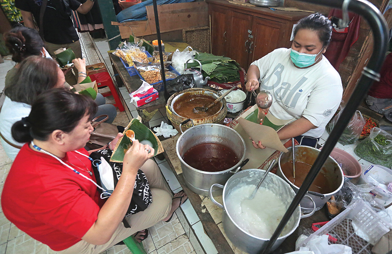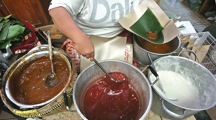 Empat jenis bubur itu disajikan di daun pisang. Semua dimasukkan dan dicampur dengan santan. Satu porsi harganya hanya Rp 5 ribu. Maka tak heran, 350 porsi itu bisa ludes dalam dua jam. ’’Kadang satu pelanggan bisa makan 3–4 porsi,’’ jelas Novi.
