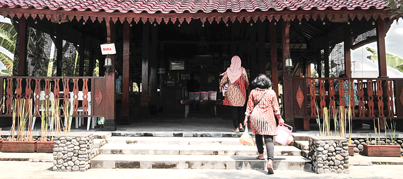 NYAMAN: Joglo bertulisan Sop Iga & Ingkung Mbah Geol menyambut para tamu. (MUHAMAD ALI/JAWA POS)