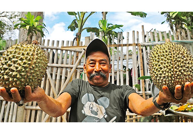 MIRIP: Durian tawing yang ditunjukkan Warno memiliki keunggulan lain. Bijinya sangat kecil. Bahkan, ada buah yang tidak berbiji. (Puguh Sujiatmiko/Jawa Pos)