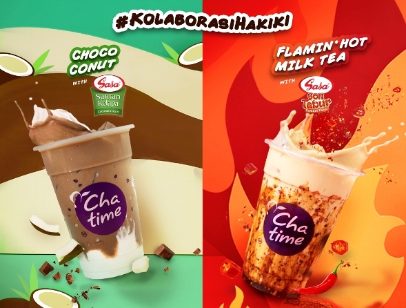 Sasa dan Chatime mengeluarkan Choco-conut with SASA Santan, dan Flamin’ Hot Milk Tea with SASA BonTabur. Dua minuman ini akan dijual mulai 15 Juni hingga 31 Juli 2021 di seluruh gerai Chatime di Indonesia.