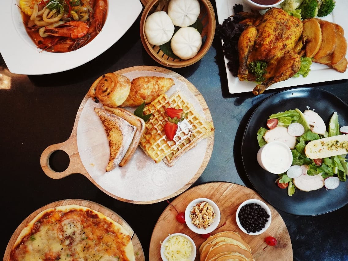 Berbagai menu tersedia mulai dari English breakfast serta makanan tradisional tersedia di Sunday Brunch, menu lunch Asia seperti dim sum, lamian, serta steam boat disajikan secara live. Tak ketinggalan berbagai menu western seperti berbagai jenis daging panggang, pasta, serta pizza melengkapi menu buffet yang tersedia.