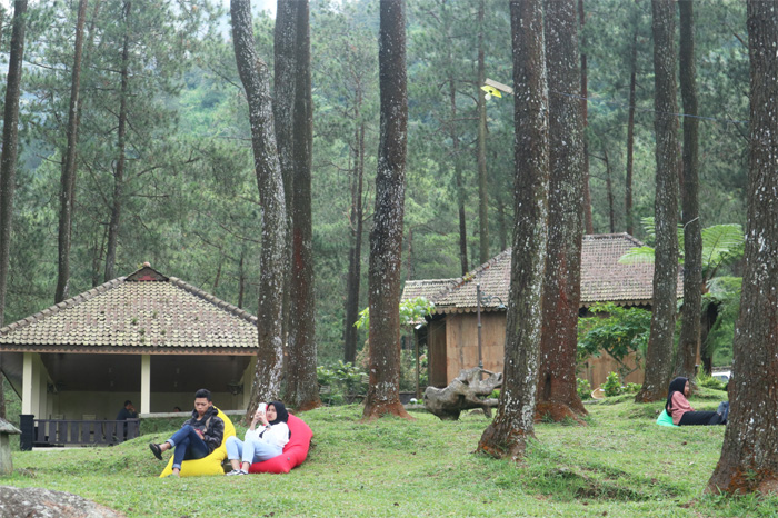 Saat masuk ke lokasi, wisatawan langsung disambut dengan pohon-pohon pinus yang menjulang tinggi. Hijaunya rumput-rumput menandakan bahwa wisata yang saat ini dijaga dan dirawat dengan baik. Tampak dari pintu masuk terdapat beberapa bangunan yang dipergunakan untuk wisatawan menginap.