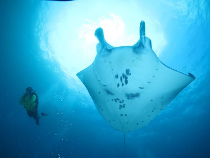Di Manta Point, wisatawan tidak hanya puas menikmati pemandangan laut yang menawan, penyelam yang beruntung juga bisa menyaksikan ikan pari manta yang begitu besar. Ikan pari manta (manta birostris) adalah spesies ikan pari terbesar di dunia. Lebar tubuhnya dari ujung sirip dada ke ujung sirip lain mencapai hampir tujuh meter.