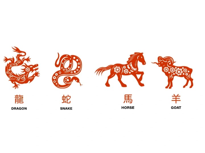 Ilustrasi shio Naga, Ular, Kuda, dan Kambing (freepik/macrovector)