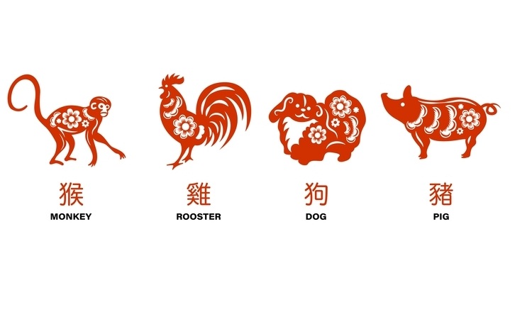 Ilustrasi shio Monyet, Ayam, Anjing, dan Babi (freepik/macrovector)