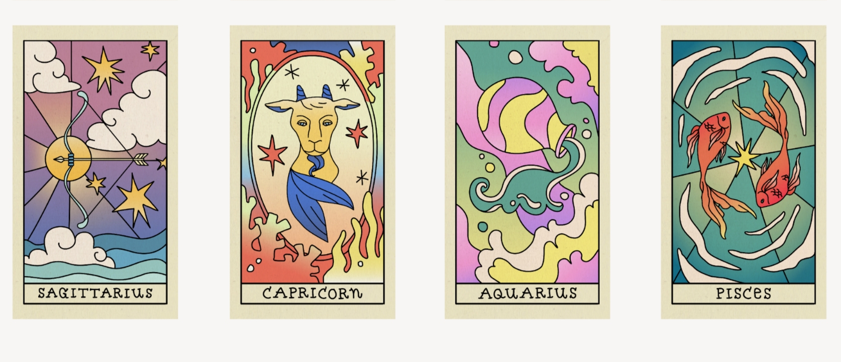 Ilustrasi zodiak Sagitarius, Capricorn, Aquarius, dan Pisces (freepik/rawpixel.com)